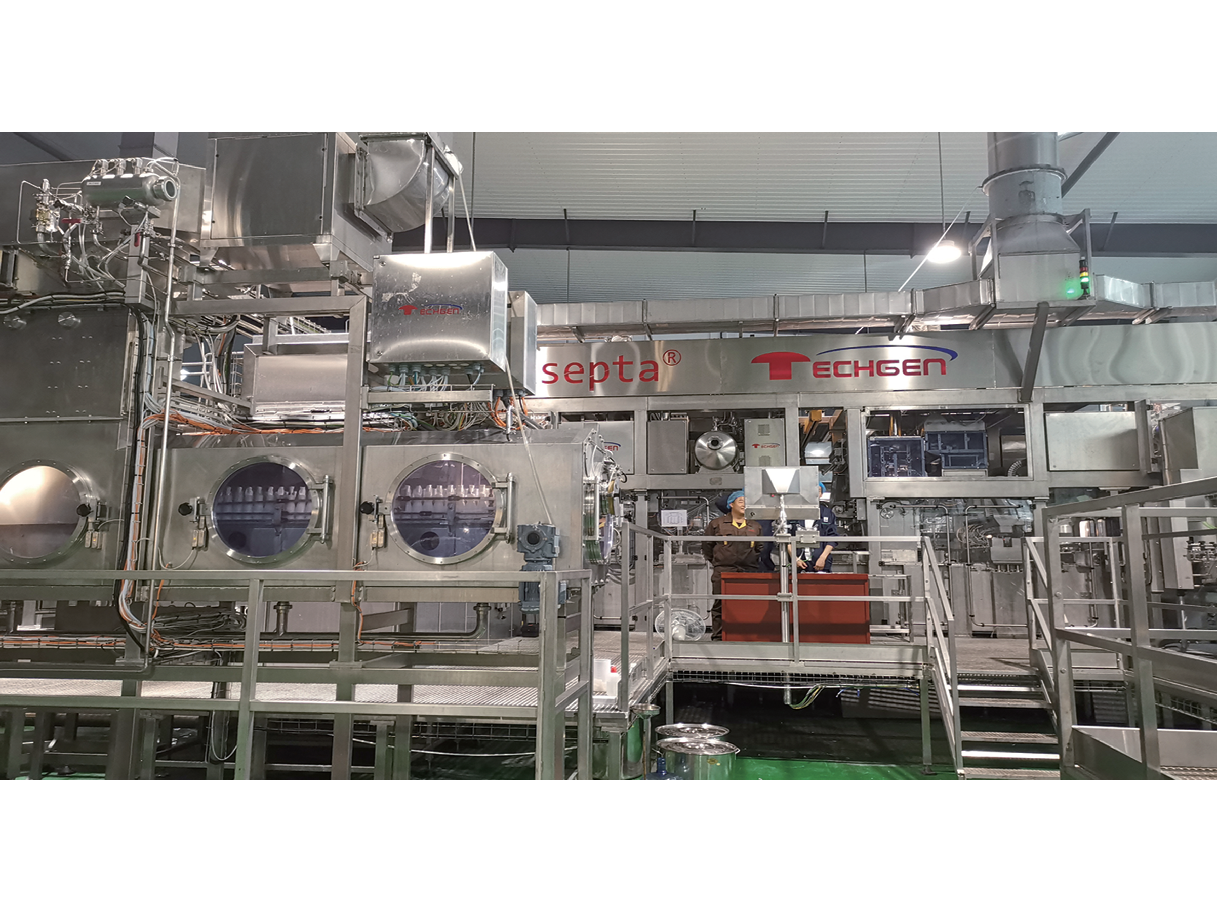 The machine is integrated with aseptic gas system for sterilization to form an aseptic filling line.