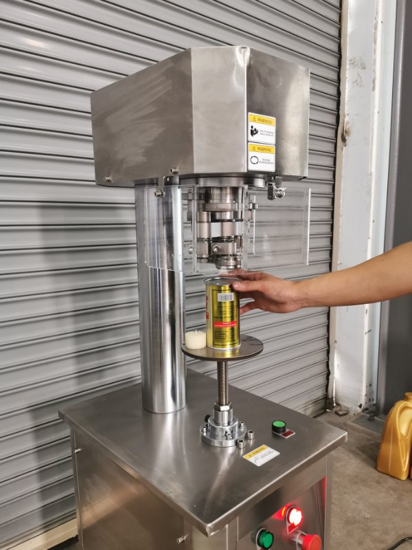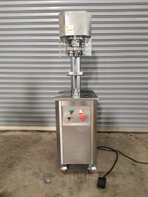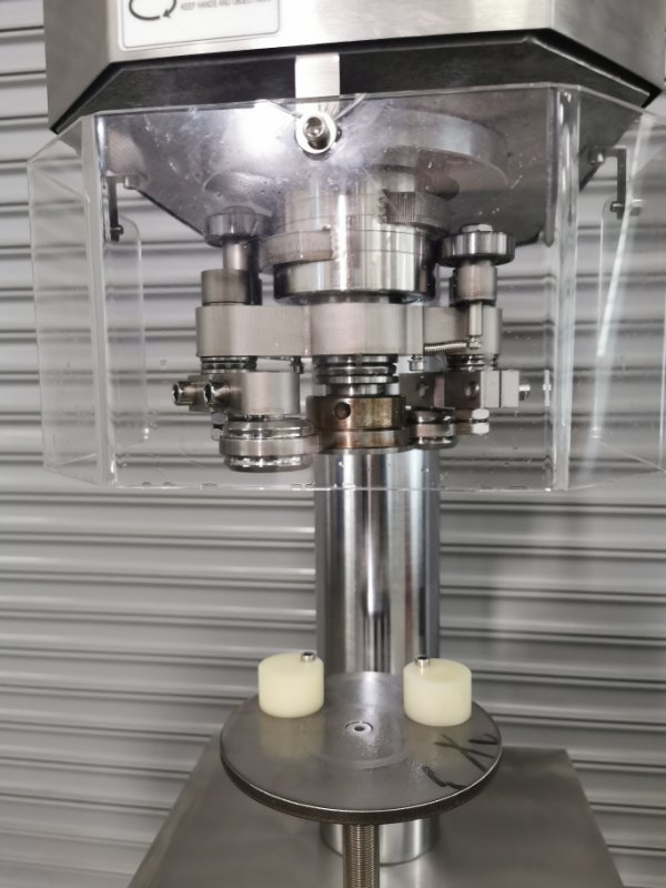 Seamer chuck holds the can while the rolls rotate around it. This seals the tin by interlocking the can body and can lid.